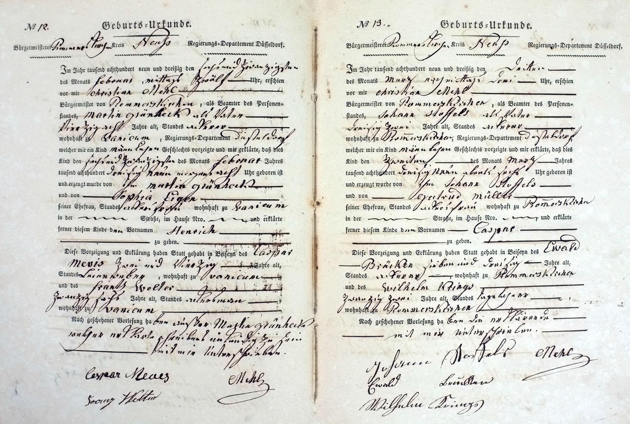 "Standesamtregister aus dem Gemeindearchiv Rommerskirchen"