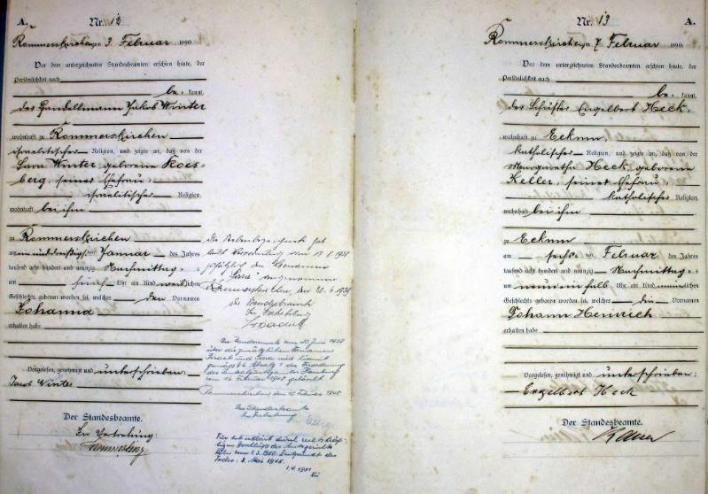 "Standesamtregister aus dem Gemeindearchiv Rommerskirchen"