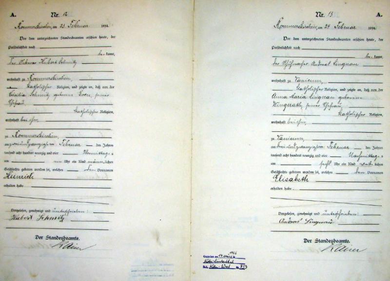 Standesamt Rommerskirchen, Register der Geburts-Urkunden für das Jahr 1894