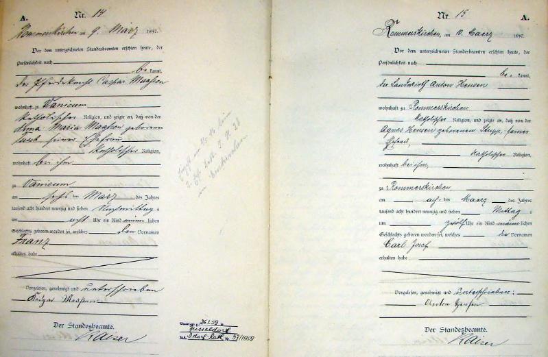 | aktuell | 09:46, 7. Jan. 2012 | 1.096 × 1.667, 38 Seiten (6,93 MB) | KlausErdmann (Diskussion • Beiträge) | {{Information |Beschreibung = ;Standesamt Rommerskirchen, Register der Geburts-Urkunden für das Jahr 1897 |Quelle = Gemeindearchiv Rommerskirchen |Urheber = |Datum = 1897 |Scans = [[User:KlausErdmann|Klaus Erdmann] |