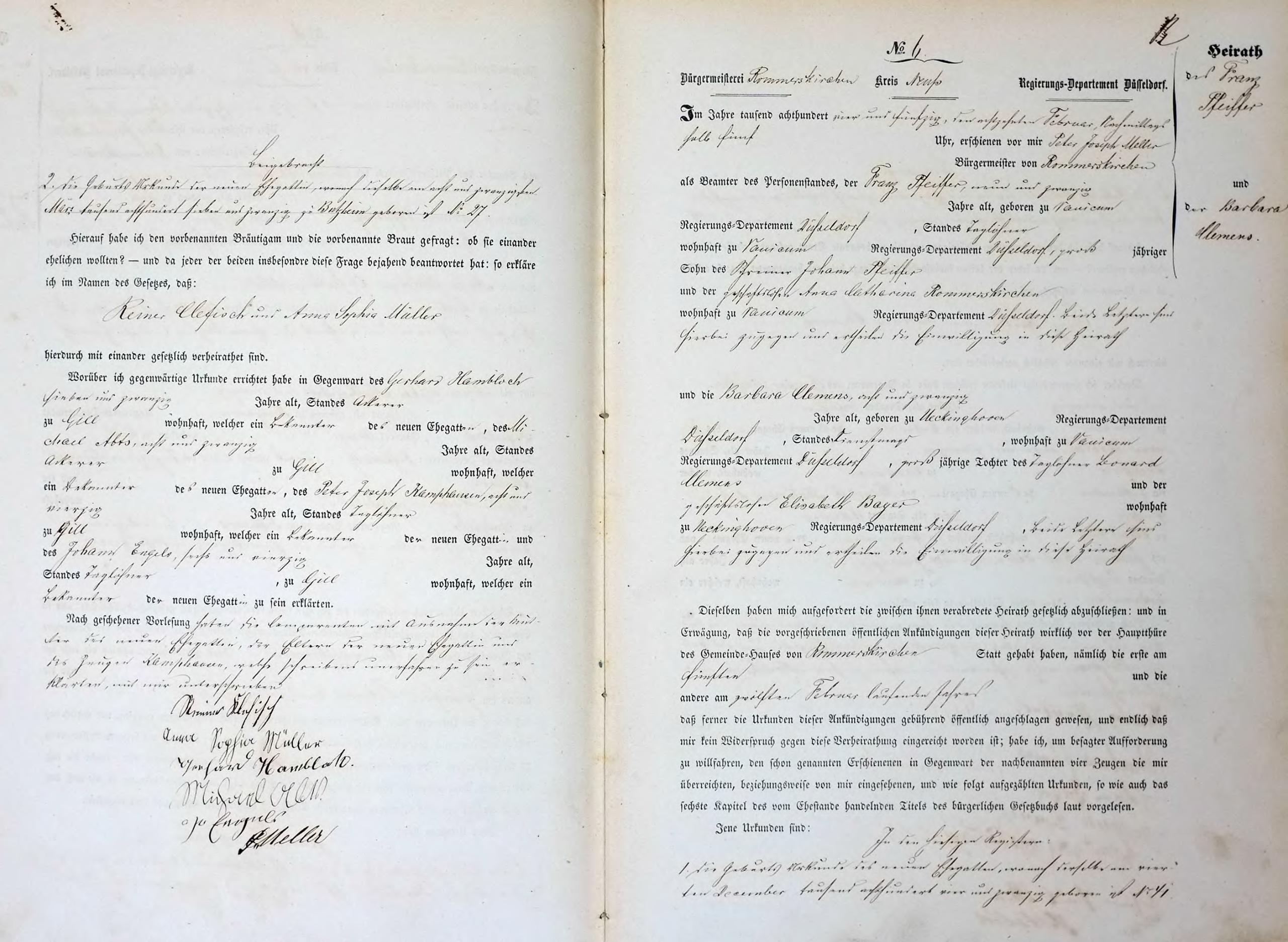 - Standesamt Rommerskirchen, Register der Heirats-Urkunden für das Jahr 1854
