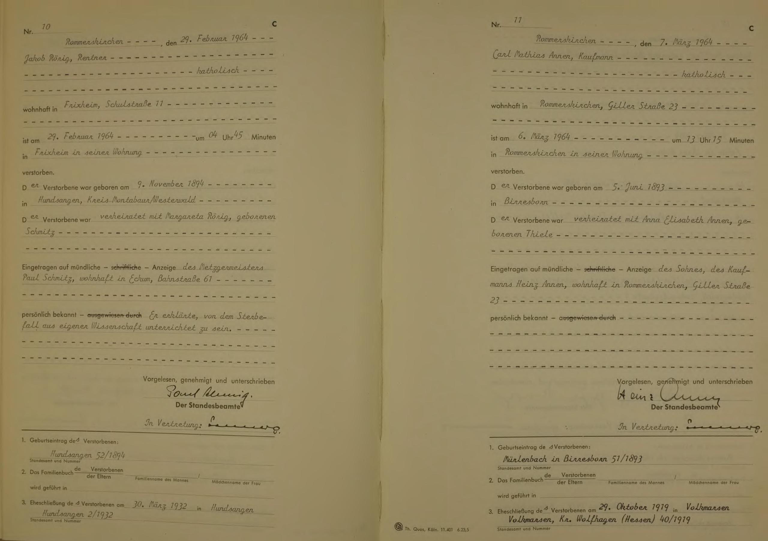 "Standesamtregister aus dem Gemeindearchiv Rommerskirchen"