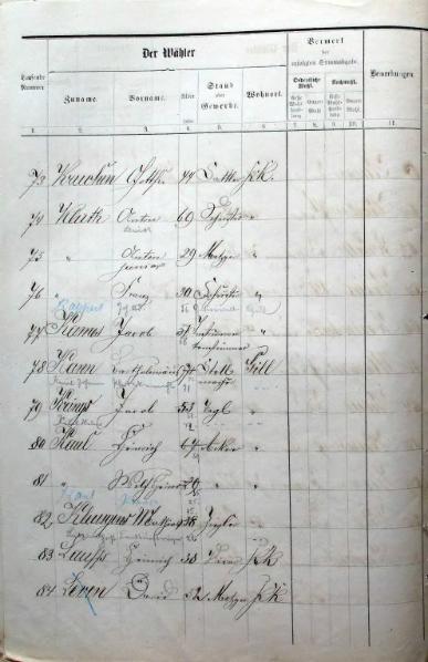 Wählerliste der Gemeinde Rommerkirchen, | |||