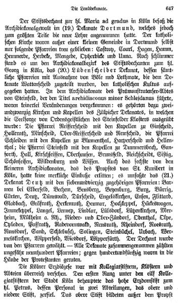 Der Bestand der Kölner Erzdiözese am Ende des achtzehnten Jahrhunderts | |||