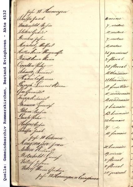 | aktuell | 14:53, 12. Sep. 2010 | 1.834 × 2.618, 18 Seiten (6,51 MB) | KlausErdmann (Diskussion • Beiträge) | {{Information |Beschreibung = ;Register der Geburts-Urkunden der Bürgermeister(ei) Evinghoven vom Jahr 1798 (Teil 1):beginnend mit Oekoven - Arnolds, Anna Maria Christina<br />endend mit Weigold, Maria Anna im VI. Jahr der französ. Repubklik |Quelle = |