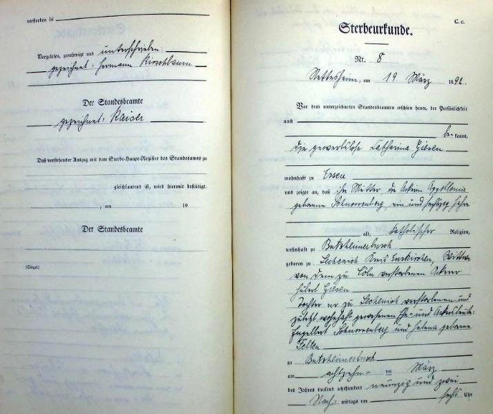| aktuell | 11:49, 18. Mär. 2012 | 1.158 × 1.701, 55 Seiten (9,34 MB) | KlausErdmann (Diskussion • Beiträge) | {{Information |Beschreibung = ;Standesamt Nettesheim, Sterbe-Register von 1892 |Quelle = Gemeindearchiv Rommerskirchen |Urheber = |Datum = 1892 |Scans = Klaus Erdmann ''(Repro: 16.März 2012)'' |