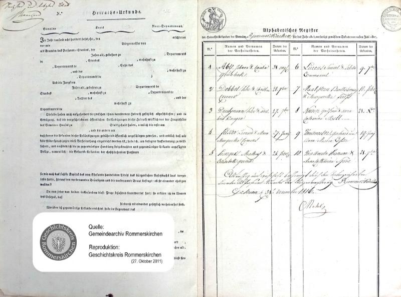 | aktuell | 16:37, 27. Okt. 2011 | 1.095 × 1.601, 9 Seiten (3,82 MB) | KlausErdmann (Diskussion • Beiträge) | {{Information |Beschreibung = ;Gemeine Rommerskirchen, Register der Heirats-Urkunden von 1816 |Quelle = Gemeindearchiv Rommerskirchen |Urheber = |Datum = 1816 |Scans = Klaus Erdmann ''(Repro: 1 |
