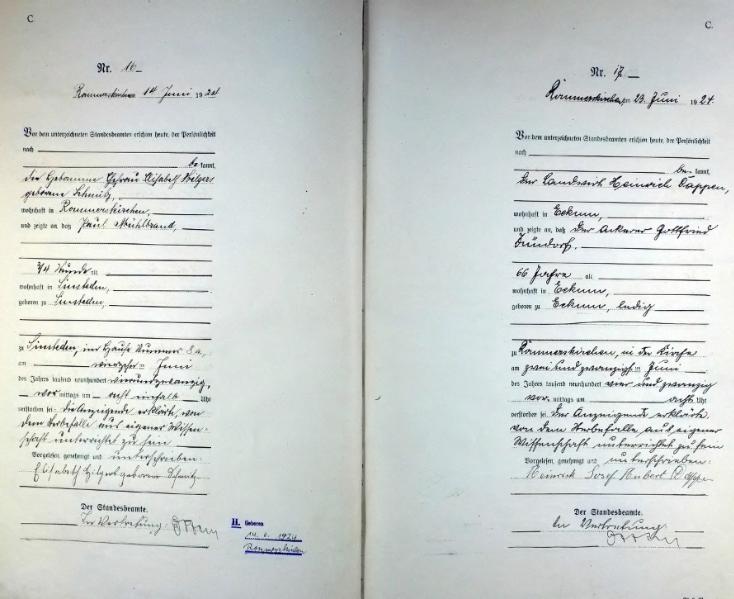 "Standesamtregister aus dem Gemeindearchiv Rommerskirchen"