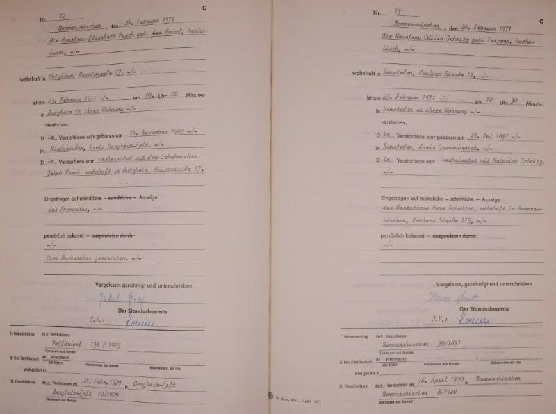 | aktuell | 14:49, 20. Jun. 2013 | 1.433 × 2.100, 29 Seiten (4,97 MB) | KlausErdmann (Diskussion • Beiträge) | {{Information |Beschreibung = ;Standesamt Rommerskirchen, Sterberegister von 1971 |Quelle = Archiv im Rhein-Kreis Neuss |Urheber = |Datum = 1971 |Scans = Bernhard Erdmann ''(Repro: 20. Juni 2013)'' |Gene |