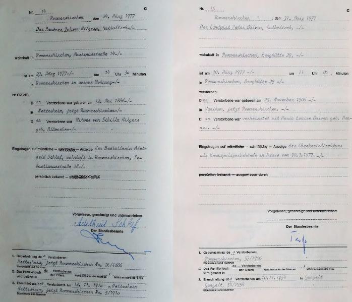 "Standesamtregister aus dem Gemeindearchiv Rommerskirchen"