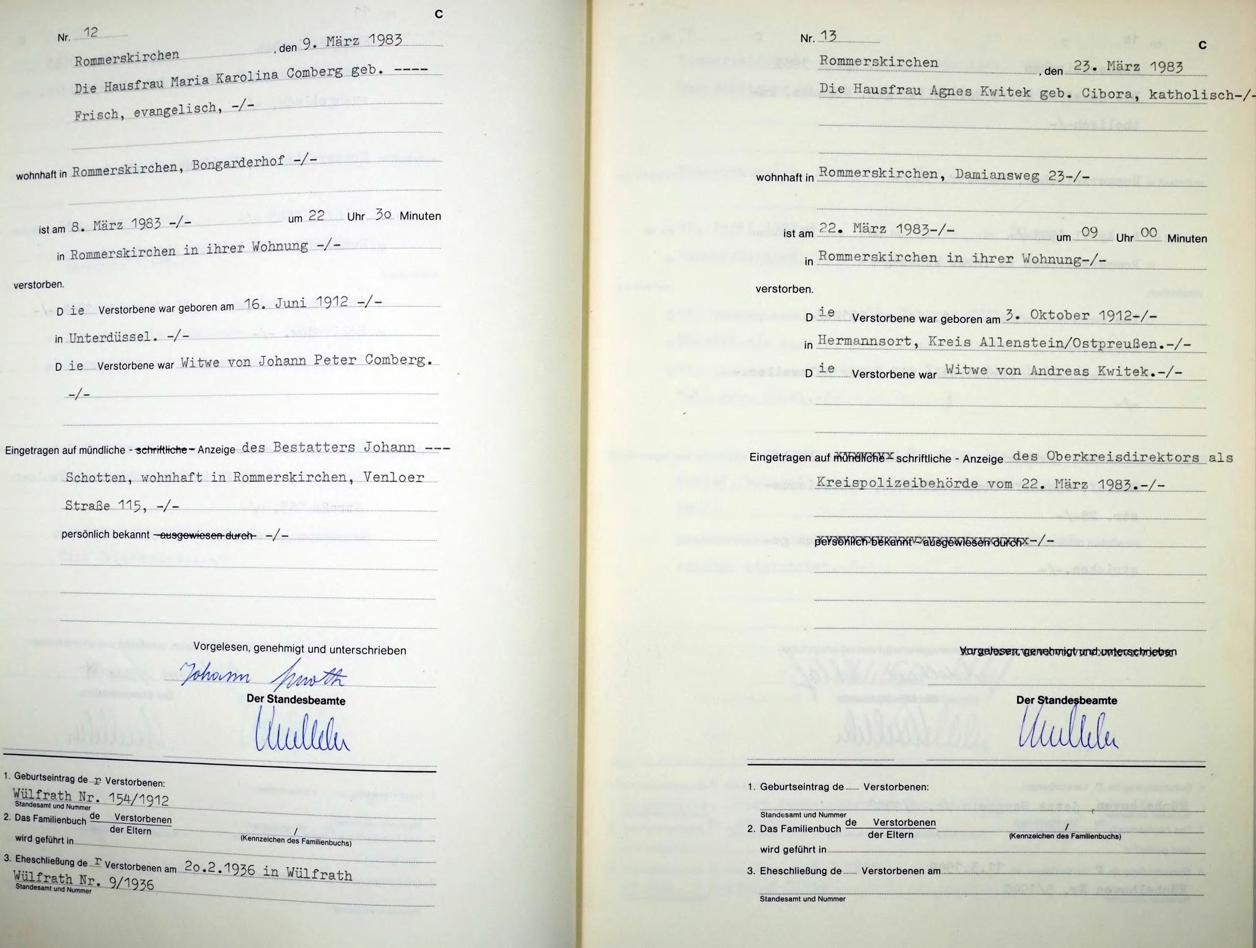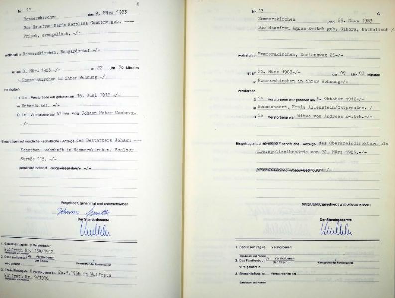 "Standesamtregister aus dem Gemeindearchiv Rommerskirchen"
