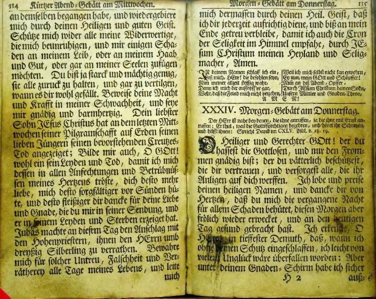 Neu eröffneter himmlischer Weyhrauch-Schatz oder vollständiges Gebätt-Buch. Auf allerhand Zeiten, Anliegen und Personen gerichtet; dabey ein genugsamer Unterricht vom Gebrauch des Heil. Abendmahls, Besuchungen der Krancken, und Zubereitung der zum Tode verurtheilten Personen, etc. samt behörigen Gebätten: Auß den aller-berühmtesten Englisch- und Französischen Theologis übersetzt und zusammen gezogen durch Johannem Zollikoffern, weiland Cammerern und Pfarrern der Christlichen Gemeinde zu Herisau. | |||